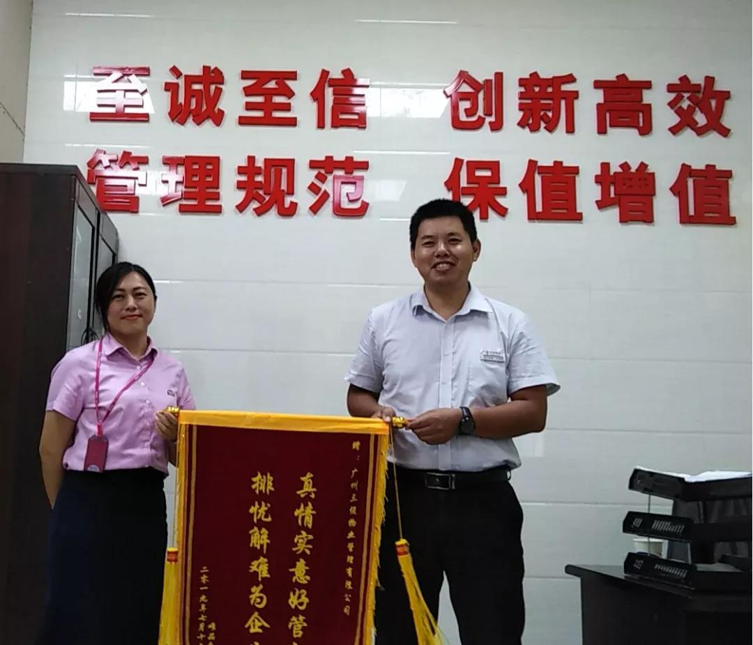 2019年7月24日上午10:00分,唯品会南沙仓行政部经理到三俊公司南沙保税港区4号仓项目部物业服务中心办公室赠送了一面写着“真情实意好管家,排忧解难为企业”的锦旗,以感谢物业服务中心提供优质的物管服务,同时,对物业服务中心的服务给予高度的评价。项目部经理接受了锦旗并表达了谢意。