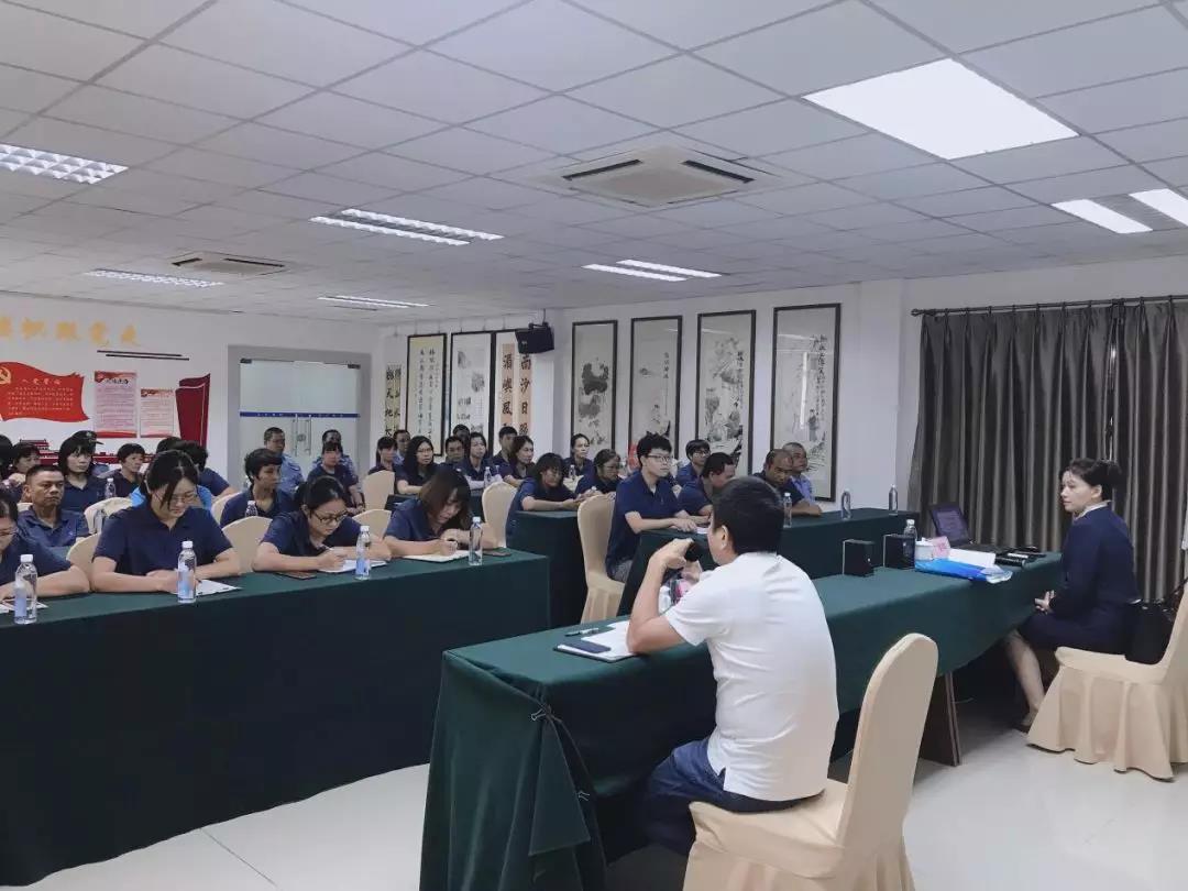 本次培训活动特邀广东省旅游职业学校讲师文黎晖主讲,结合公司实际从商务礼仪价值、职业形象塑造、商务常用礼仪、职场礼仪等几个方面展开专题培训;为了让员工准确感知优质服务的重要性,文老师用幽默的谈吐、鲜活的实例,为全体员工上了一堂生动实用而又充满知识性和趣味性的文明旅游服务知识课。